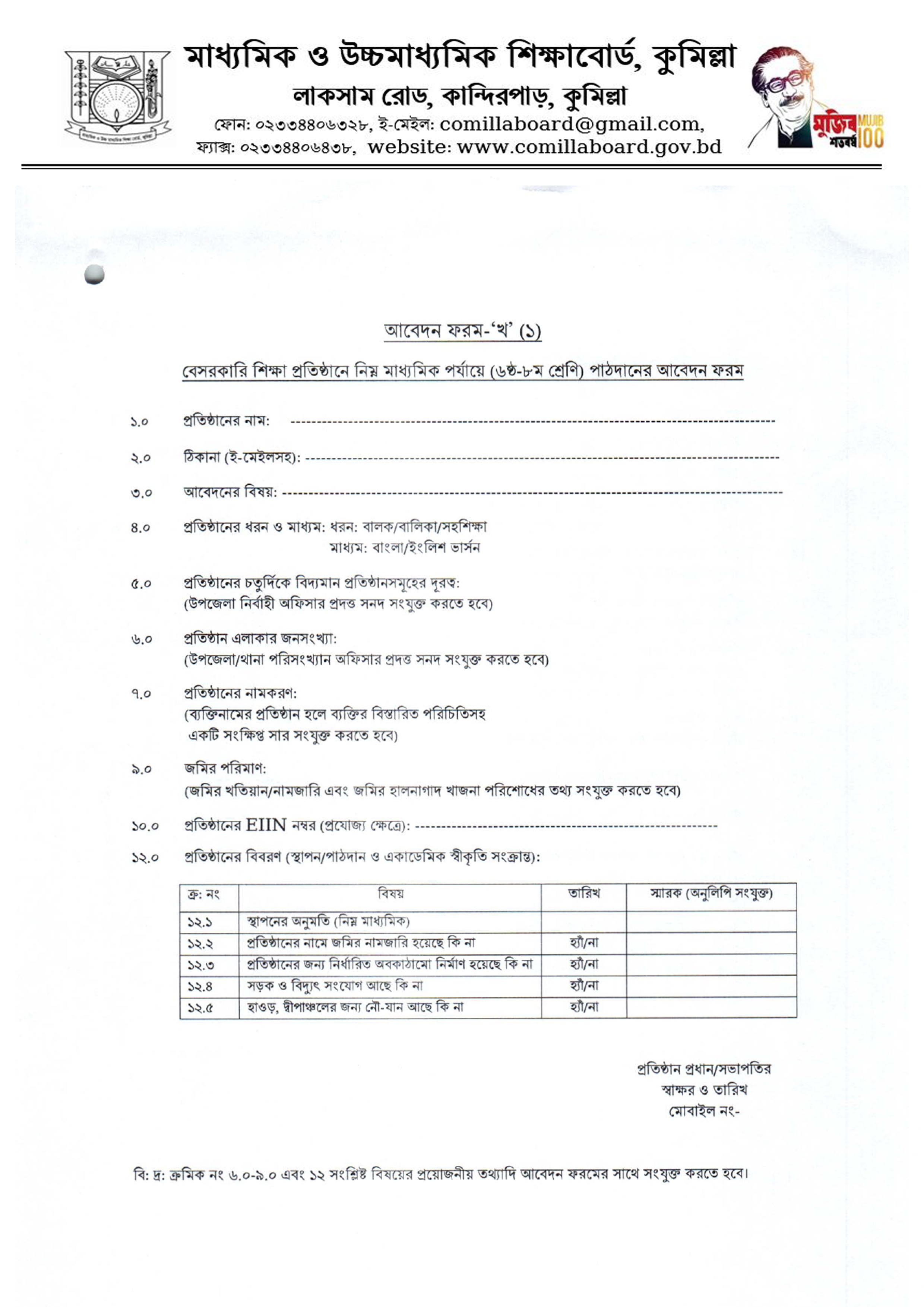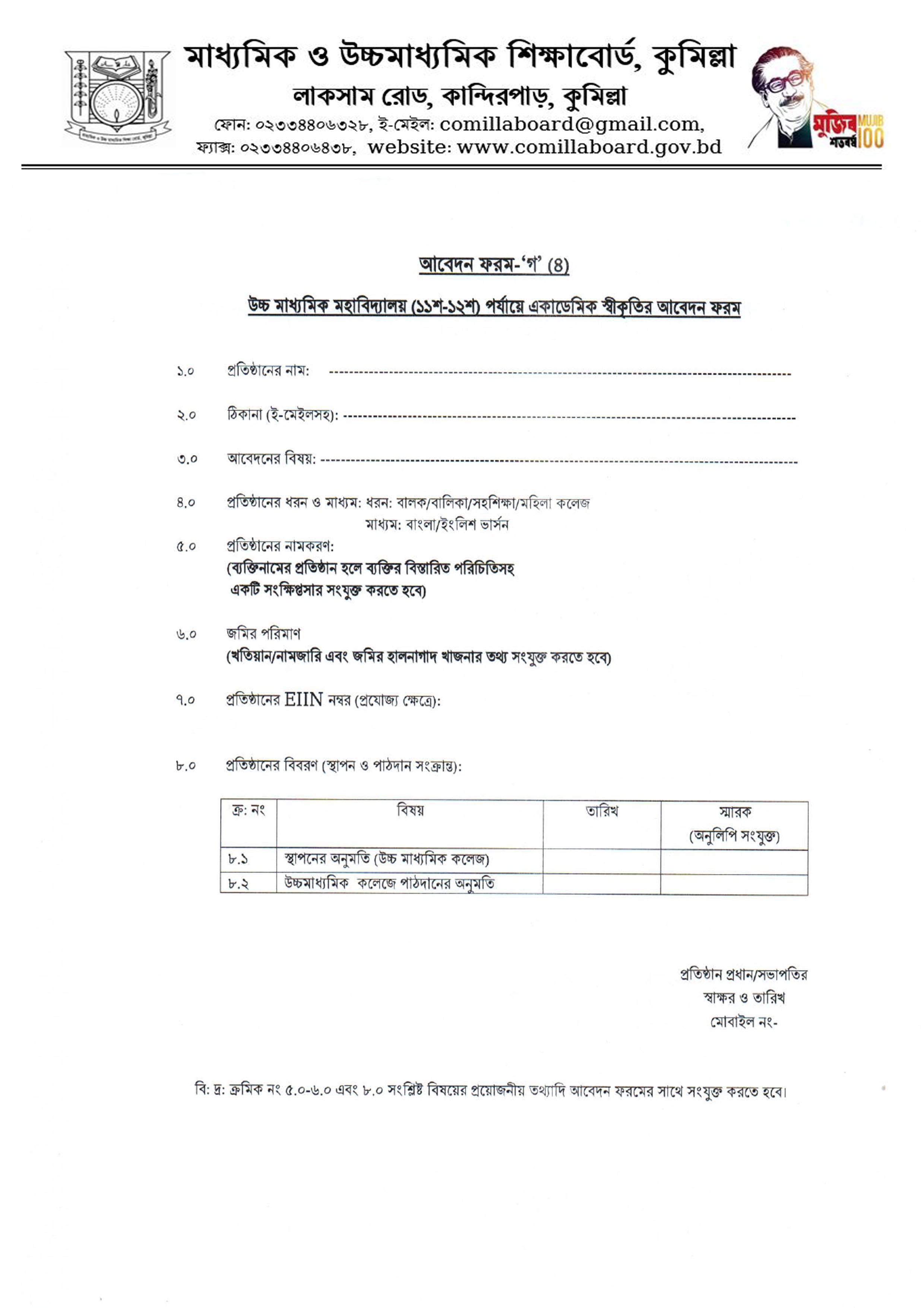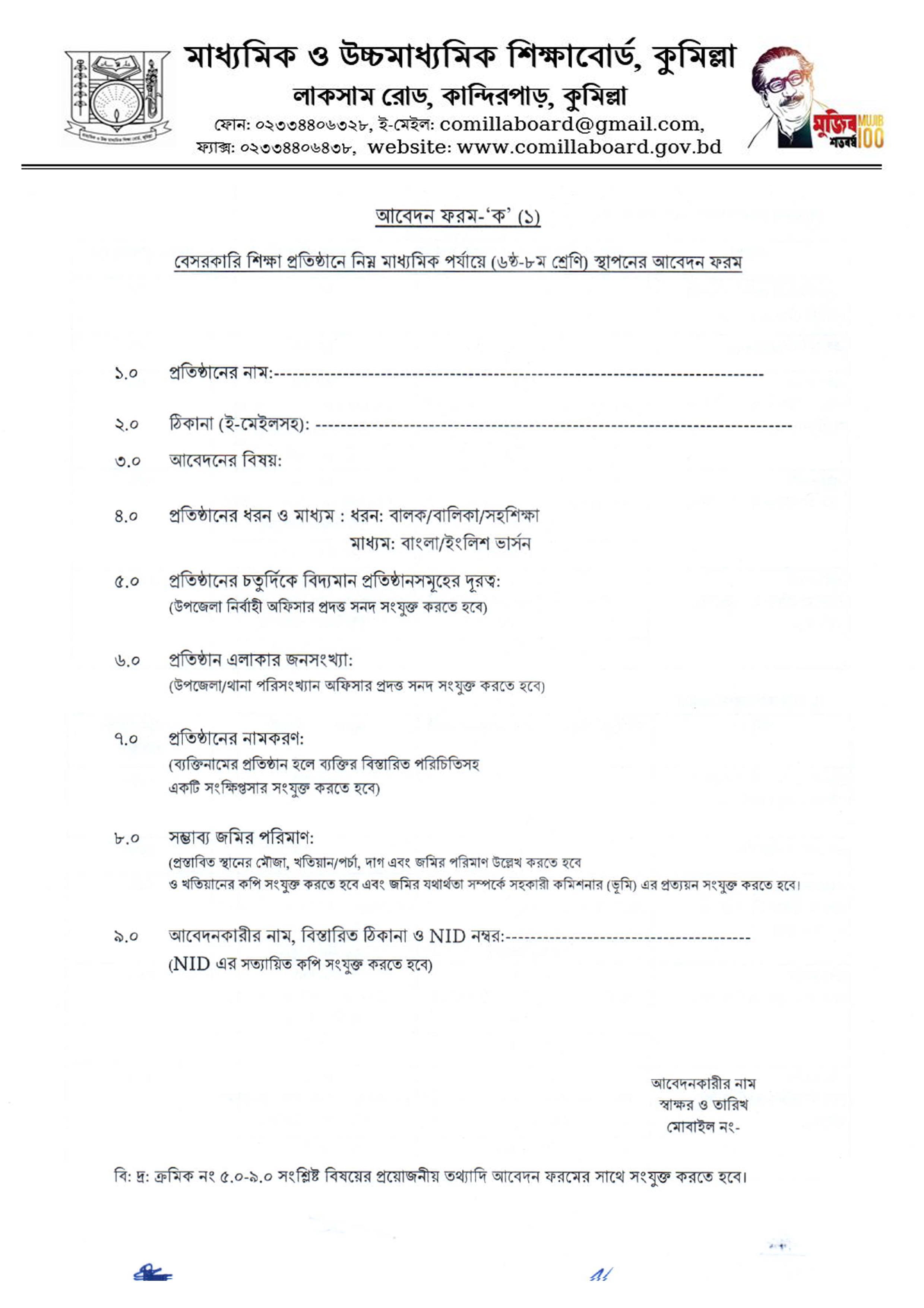 অন্যান্য আবেদন ফরম প্রতিষ্ঠান