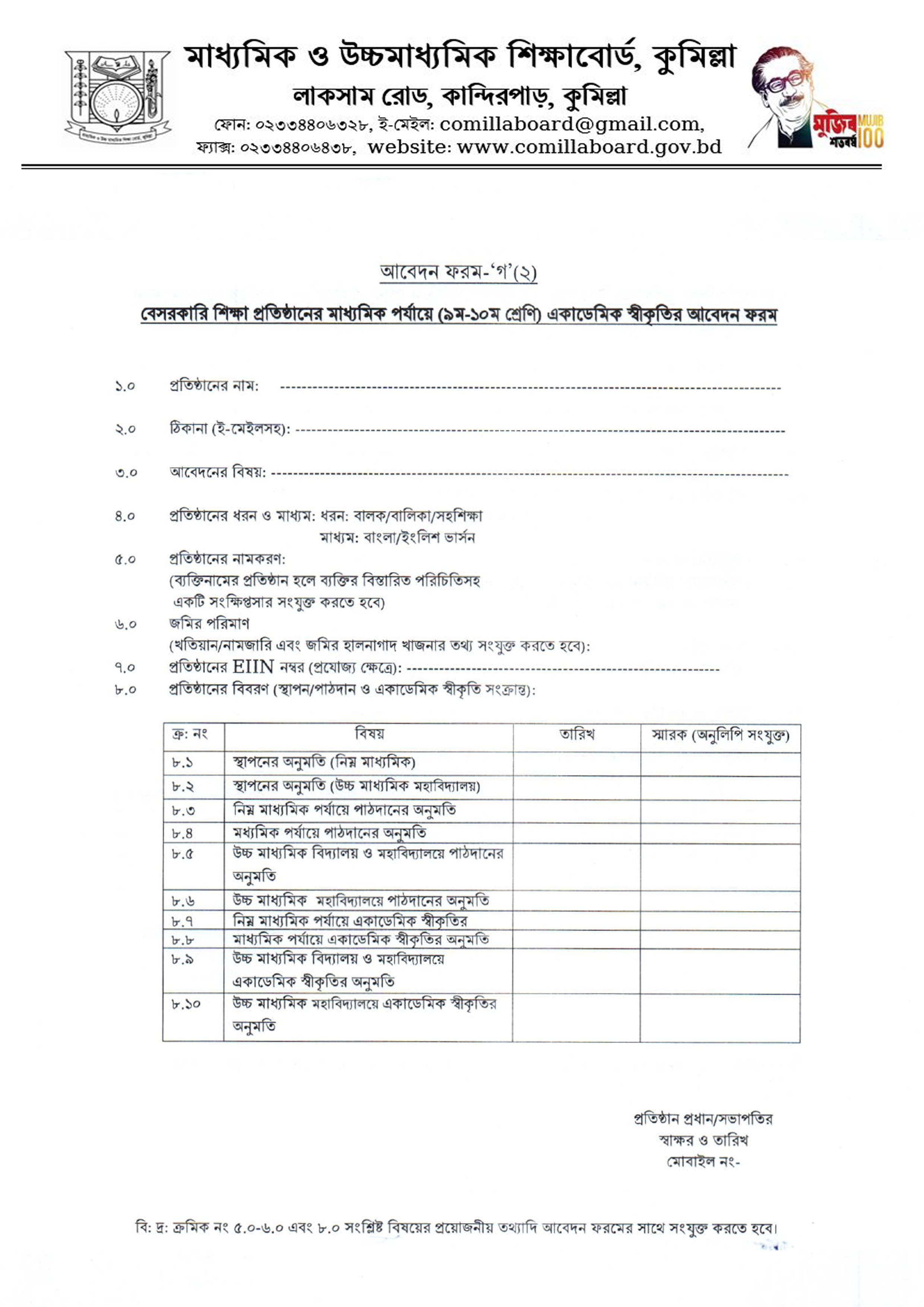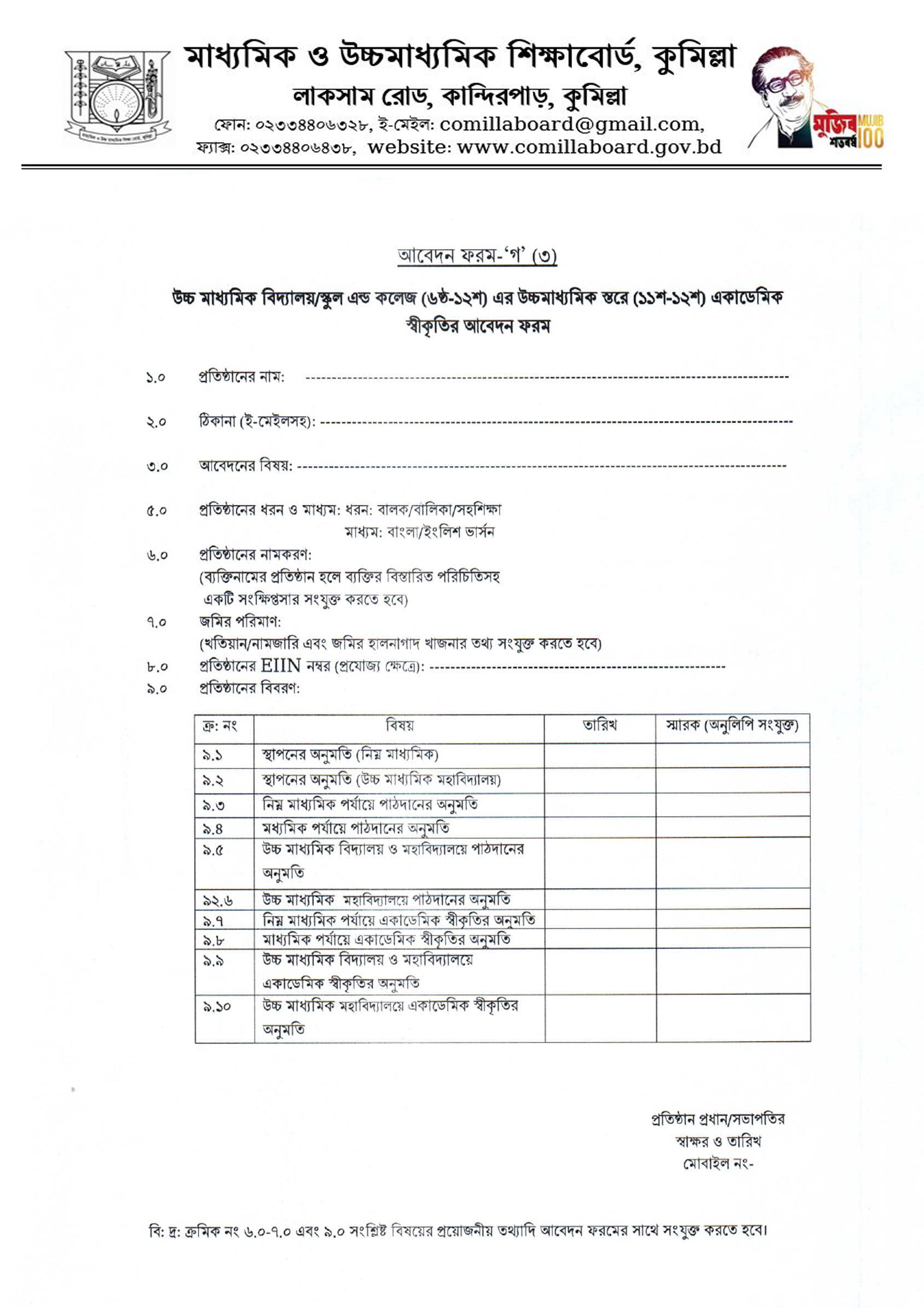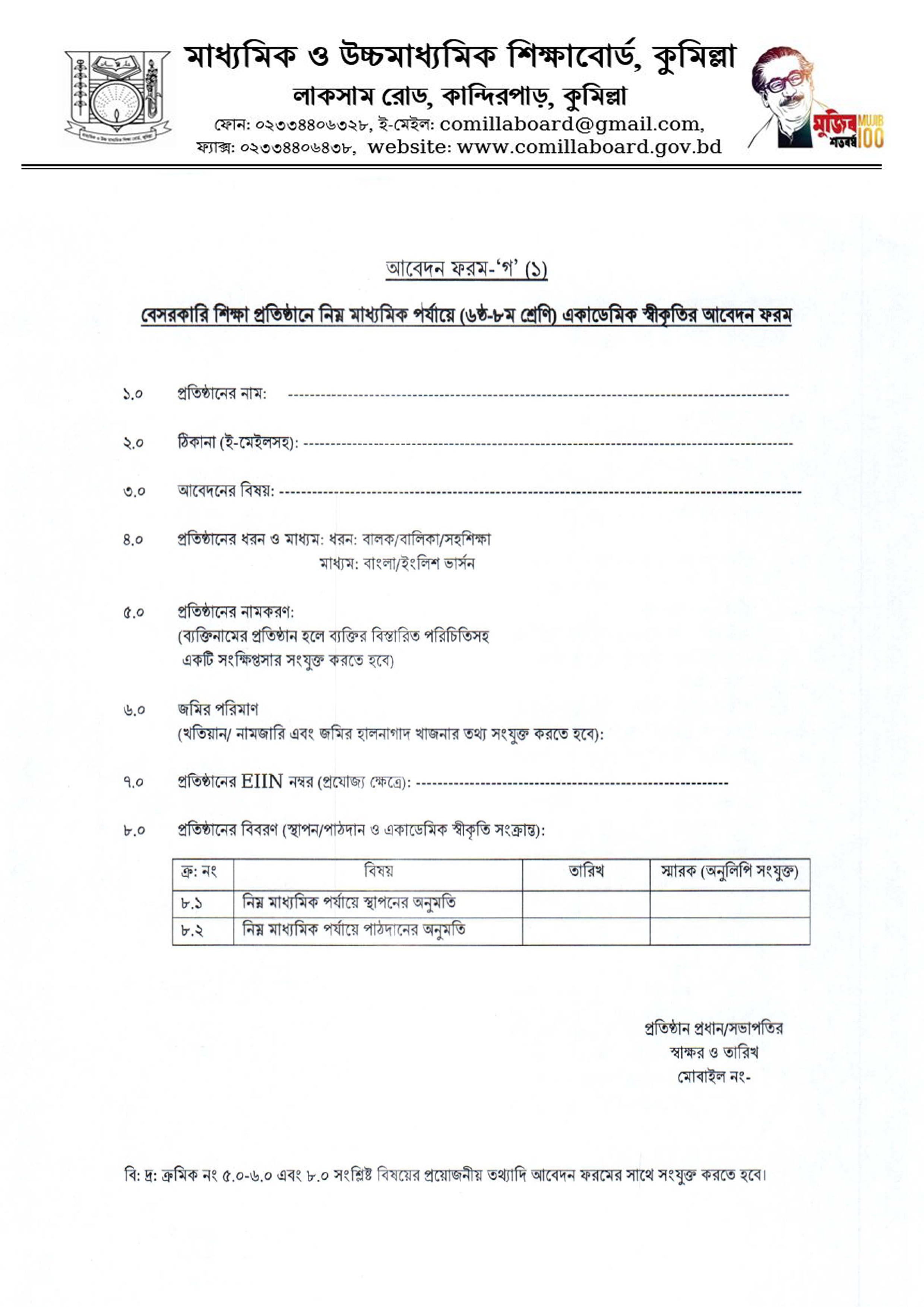 অন্যান্য আবেদন ফরম প্রতিষ্ঠান