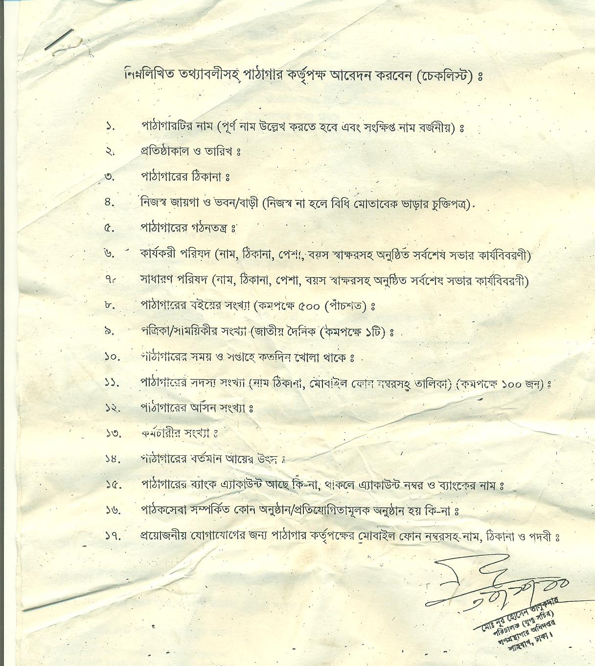 রেজিস্ট্রেশন ফরম (বেসরকারি পাবলিক লাইব্রেরি)