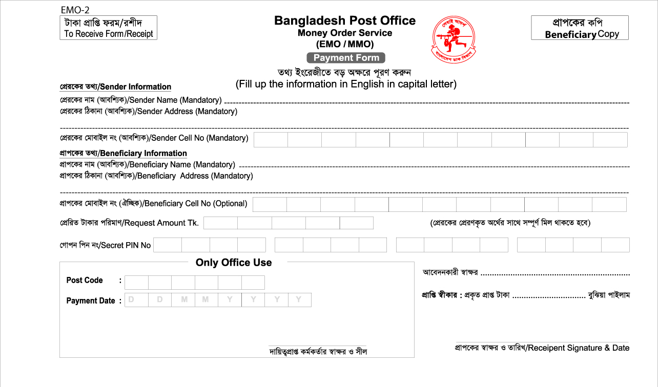মোবাইল মানি অর্ডার - পেমেন্ট ফর্ম - EMO-2